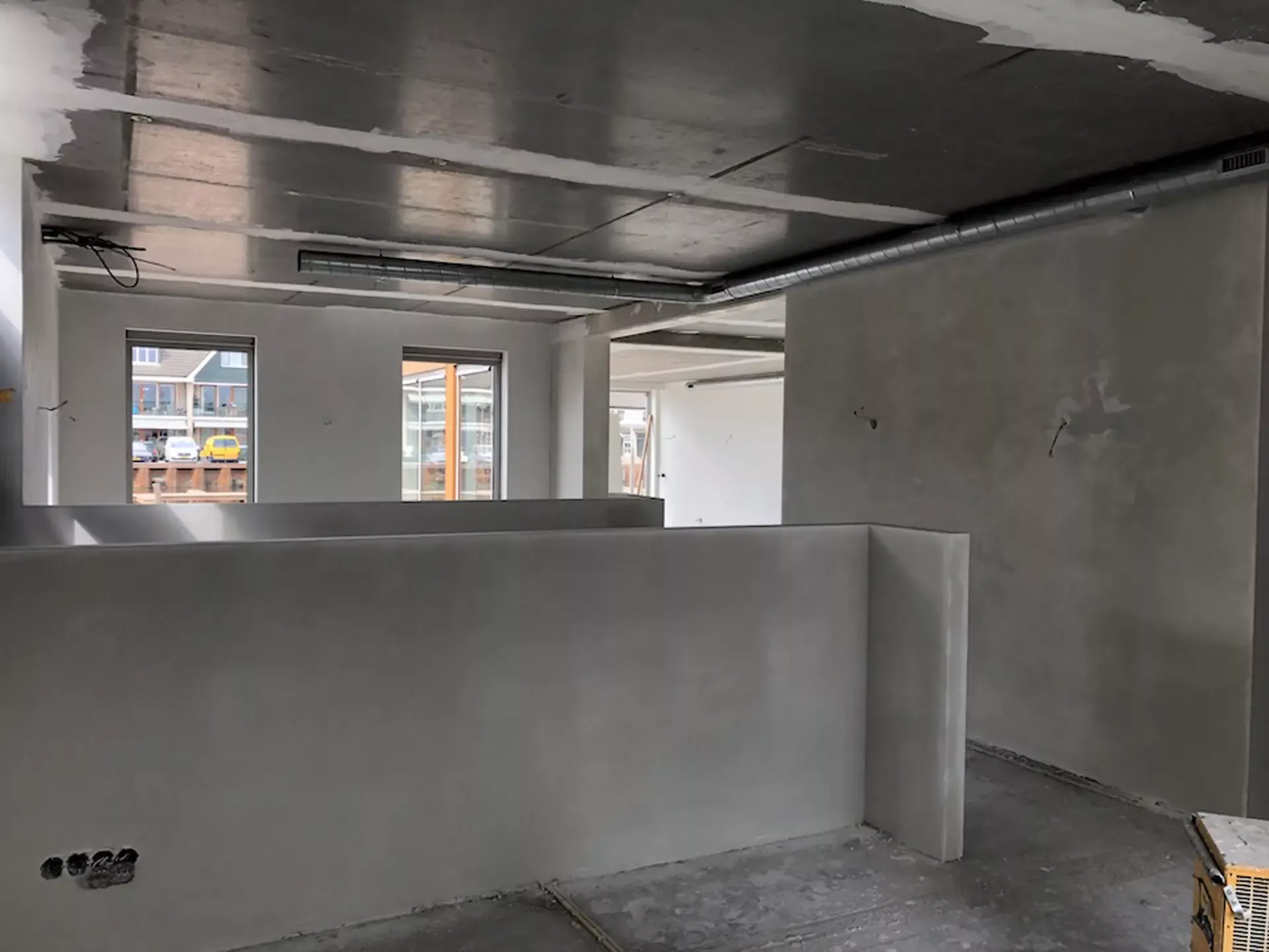 Start stukadoren en spuiten bedrijfsruimte Oud-Loosdrecht Het Kompas.