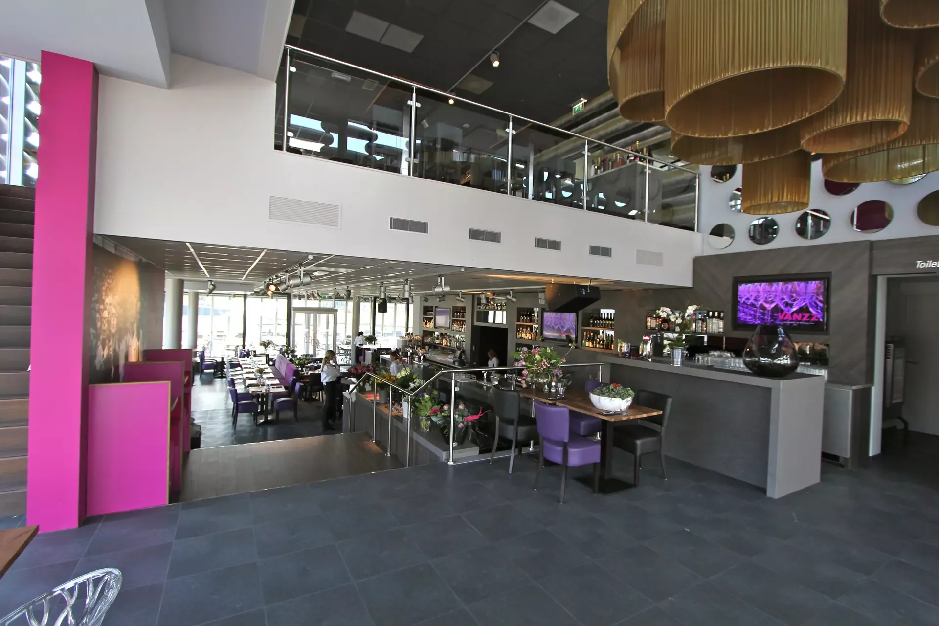 Loungebar & Restaurant Vanzz is de nieuwste hotspot aan de Arenaboulevard, waar stijl en comfort samenkomen in een uniek horecaconcept. Het interieur is trendy en strak ontworpen, met een sfeer die zowel modern als intiem aanvoelt. De twee verdiepingen worden elegant met elkaar verbonden door een indrukwekkende vide, die de ruimtelijkheid en het design extra benadrukt. Voor dit project hebben wij met trots het stukadoorswerk, schilderwerk en spuitwerk verzorgd, waarbij we hebben gezorgd voor een perfecte afwerking die volledig aansluit bij de verfijnde ambiance van Vanzz.